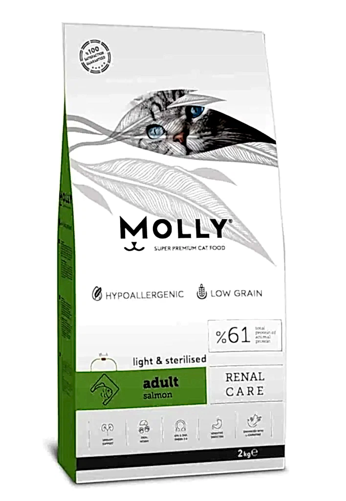 | Etiketler | Molly Somonlu Light Düşük Tahıllı Kısır Kedi Maması 2kg |